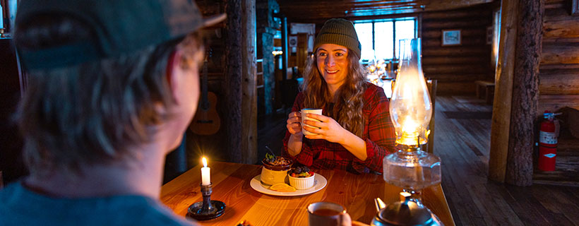 Our friendly lodge staff will welcome you the lodge and show you to your room or cabin. Afternoon tea service will be awaiting you in the dining room after you are settled. Homemade soup and a charcuterie board with an assortment of cheeses, housemade pickles and locally cured meats are served. We have a beautiful selection of Jolene’s Tea from Banff, Alberta and Banff Roasting Company’s Peyto’s Brew French press coffee to choose from. Skoki offers a tasty selection of Alberta and British Columbia craft beer and cider, an international wine list and select spirits.